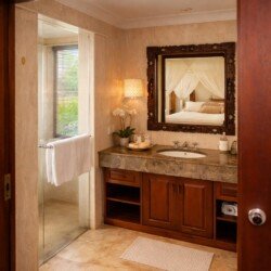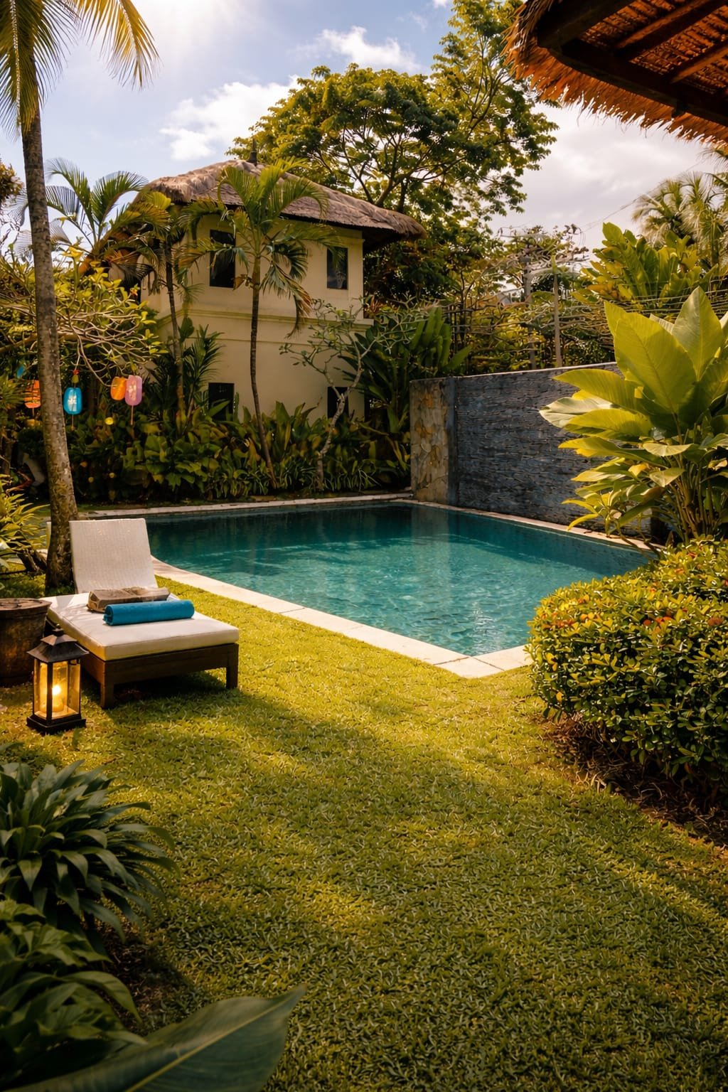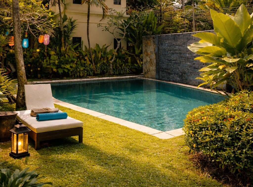 Ascunsă într-o zonă liniștită din Jimbaran, vila îți oferă exact ce cauți după haosul zilnic: intimitate, verdeață tropicală și o liniște care te apasă frumos.