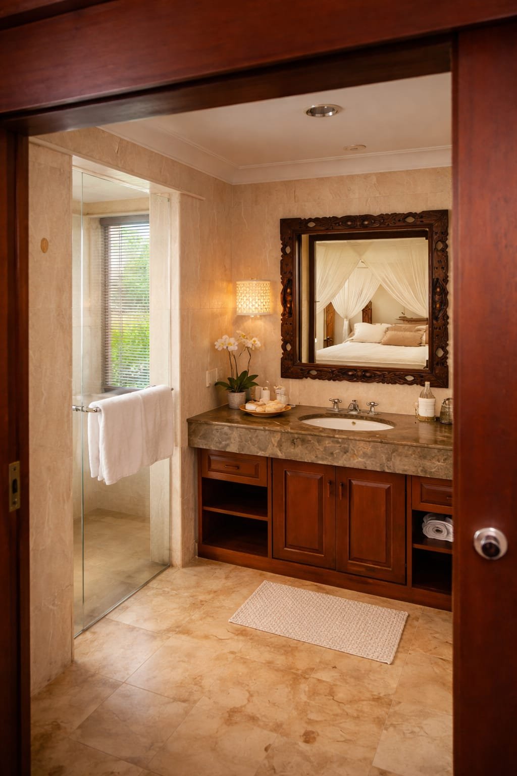 Ascunsă într-o zonă liniștită din Jimbaran, vila îți oferă exact ce cauți după haosul zilnic: intimitate, verdeață tropicală și o liniște care te apasă frumos.