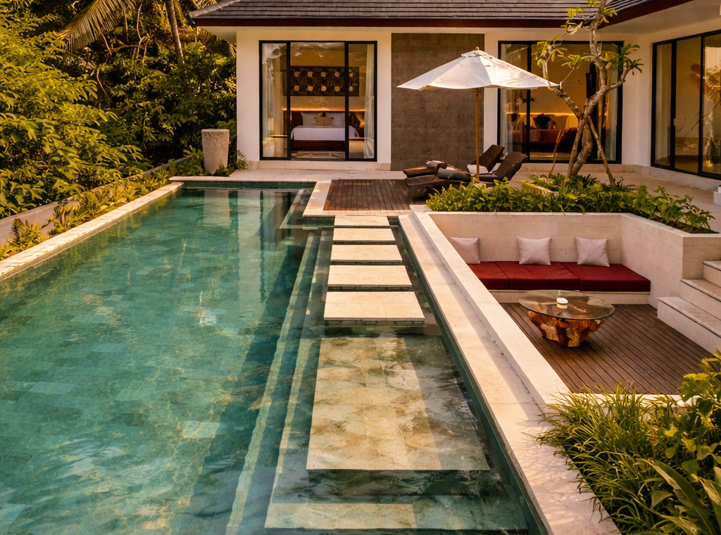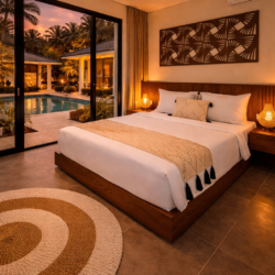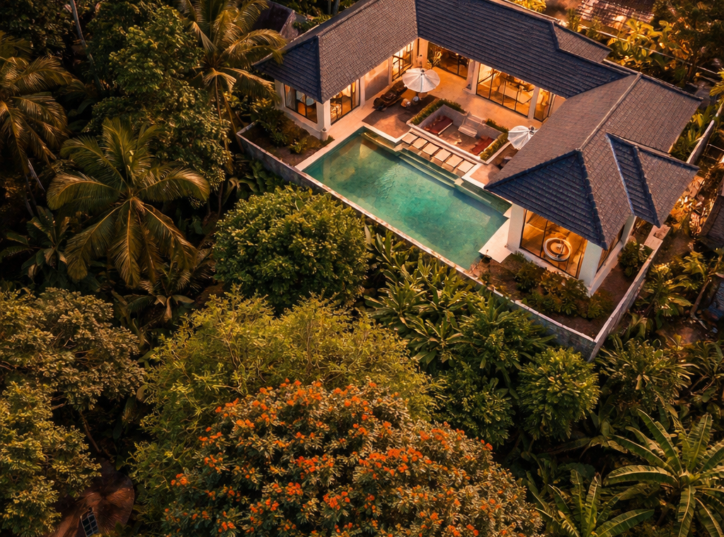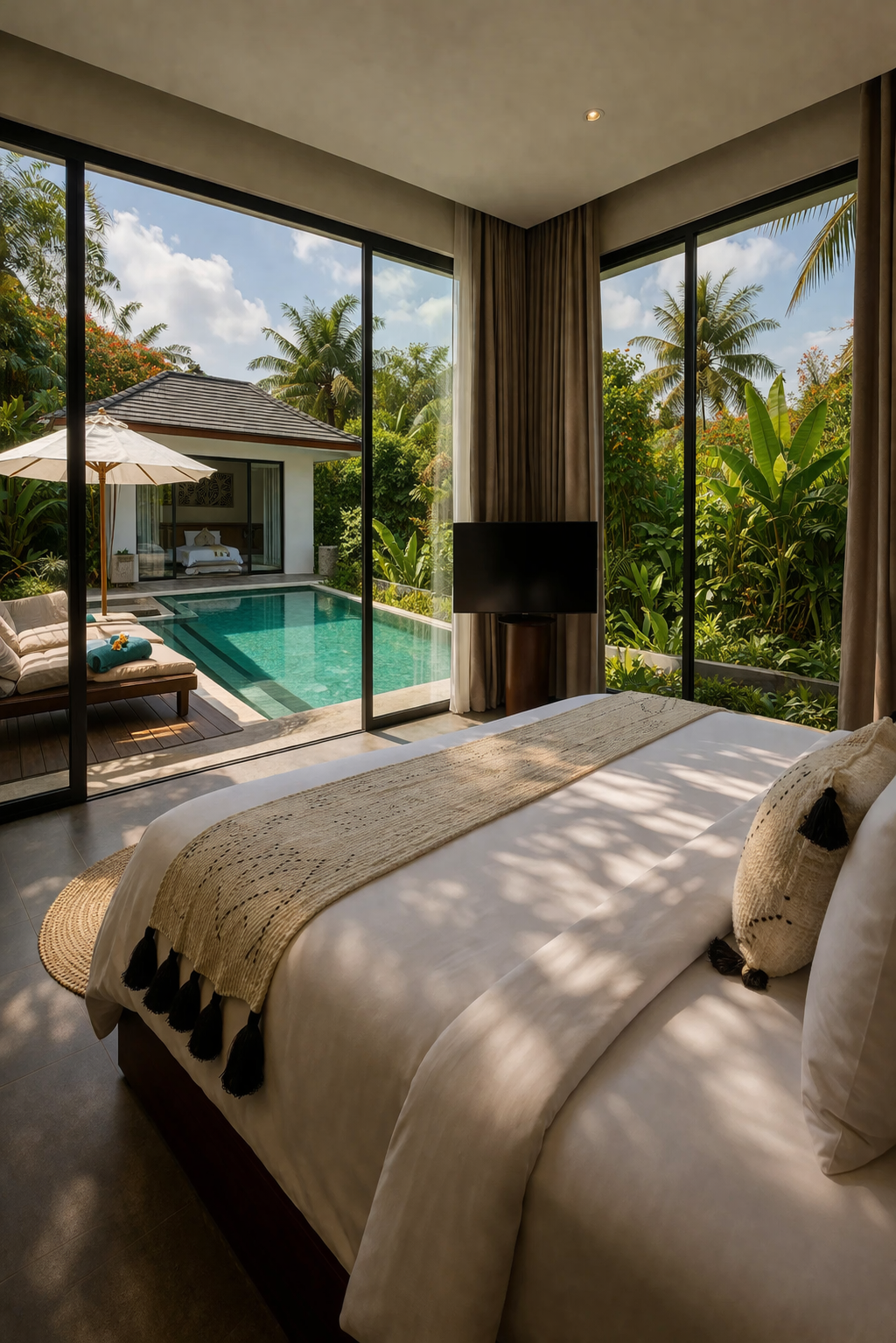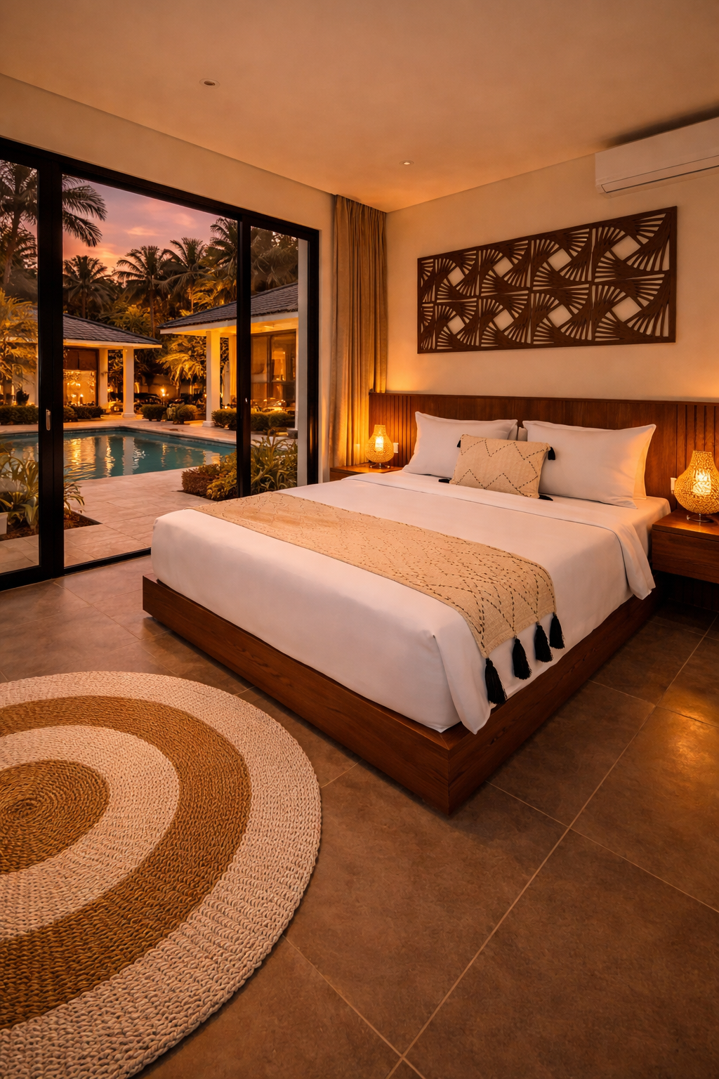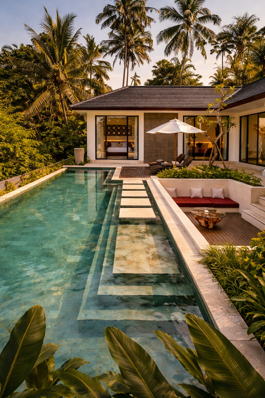 Ascunsă printre palmieri și grădini tropicale, Serena Sura Villa este acel loc pe care îl vezi o dată și îl simți pentru totdeauna. Diminețile încep cu lumină naturală care intră prin ferestrele largi, iar serile se transformă într-un spectacol de culori calde, reflectate în piscina privată.