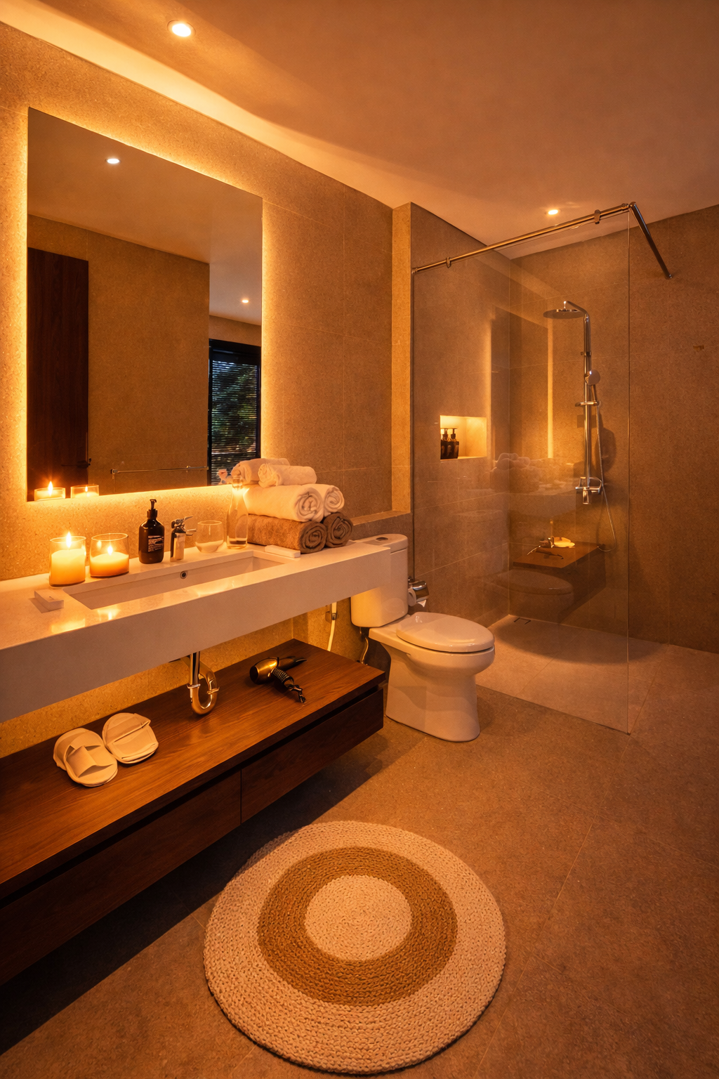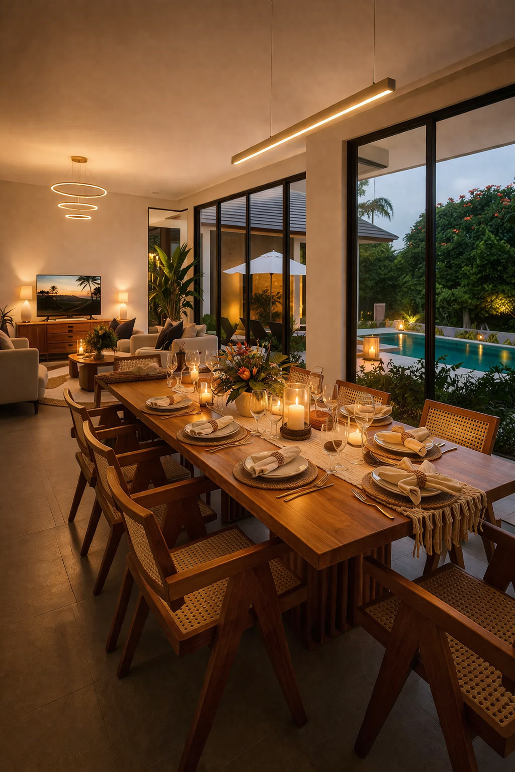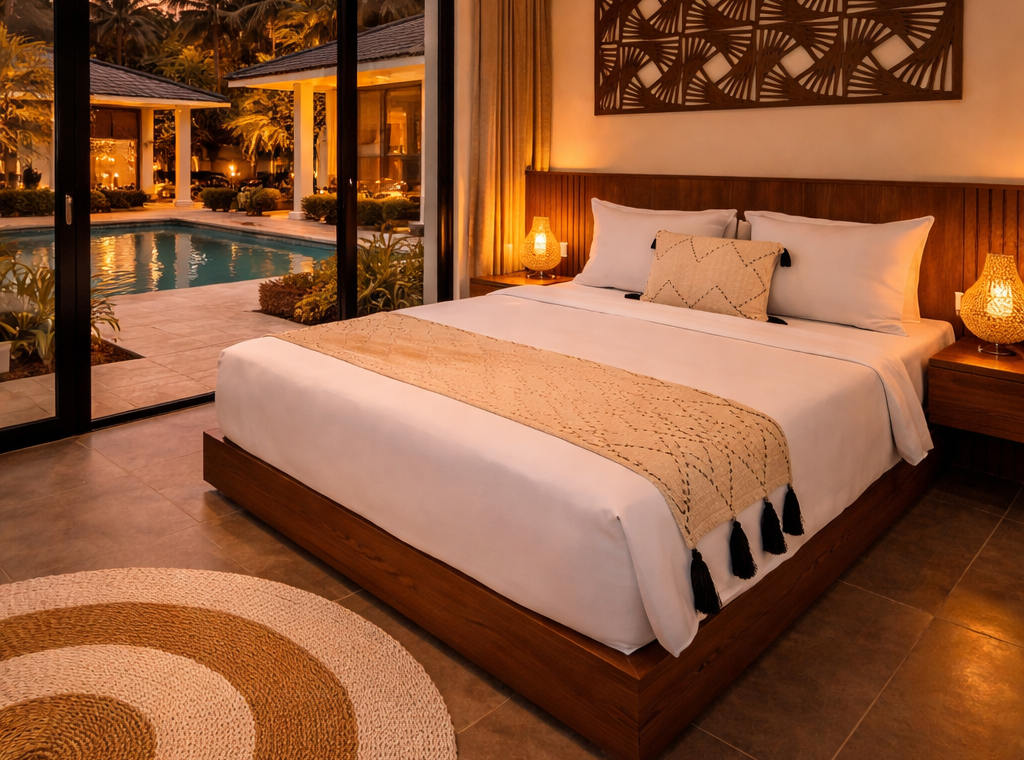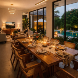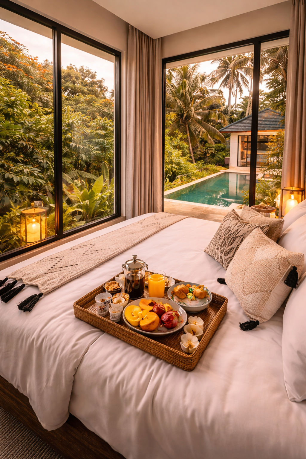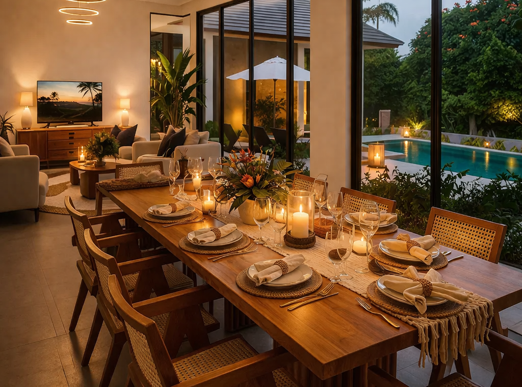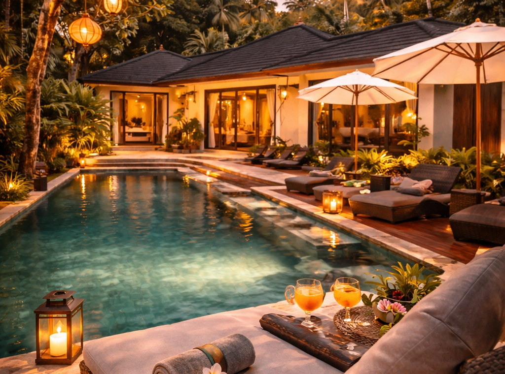 Ascunsă printre palmieri și grădini tropicale, Serena Sura Villa este acel loc pe care îl vezi o dată și îl simți pentru totdeauna. Diminețile încep cu lumină naturală care intră prin ferestrele largi, iar serile se transformă într-un spectacol de culori calde, reflectate în piscina privată.